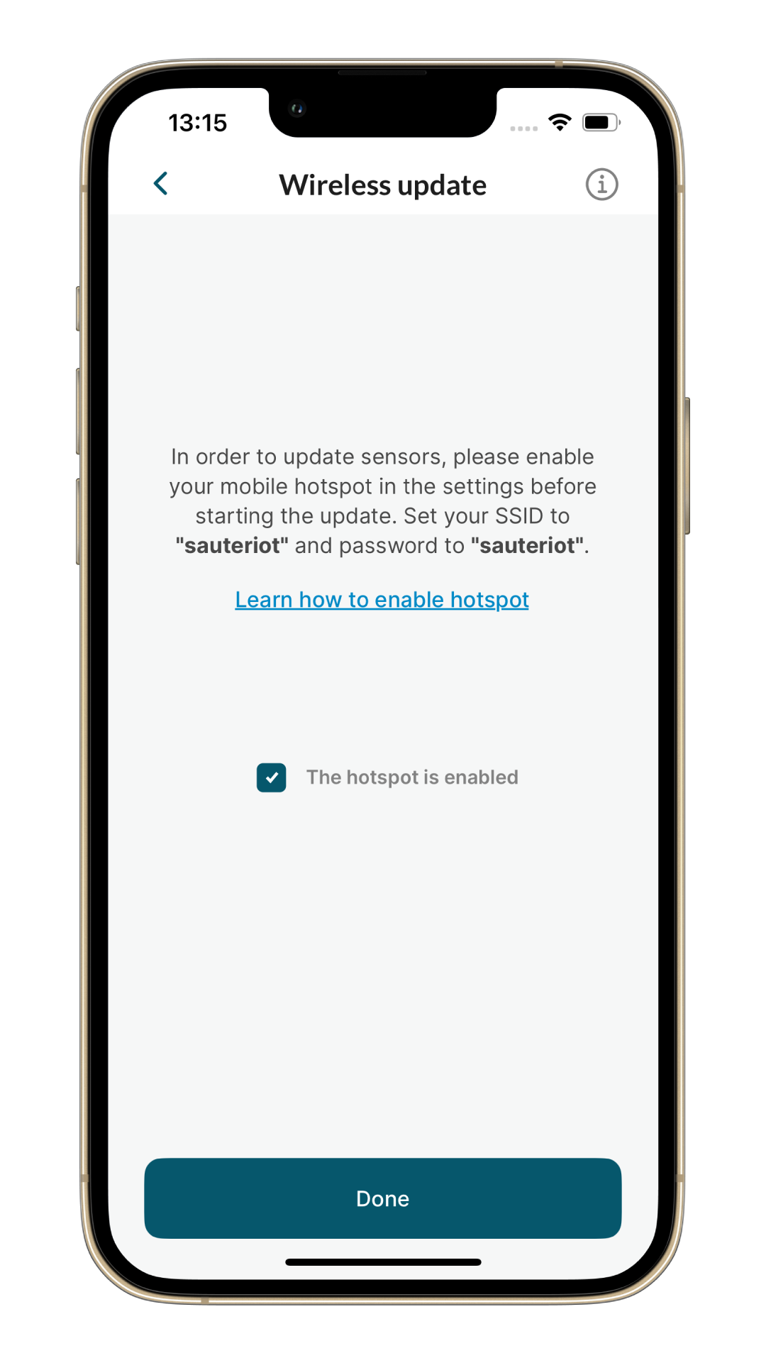 - Set Hotpost name and Hotspot password to sauteriot, and turn on Use Wi-Fi hotspot toggle