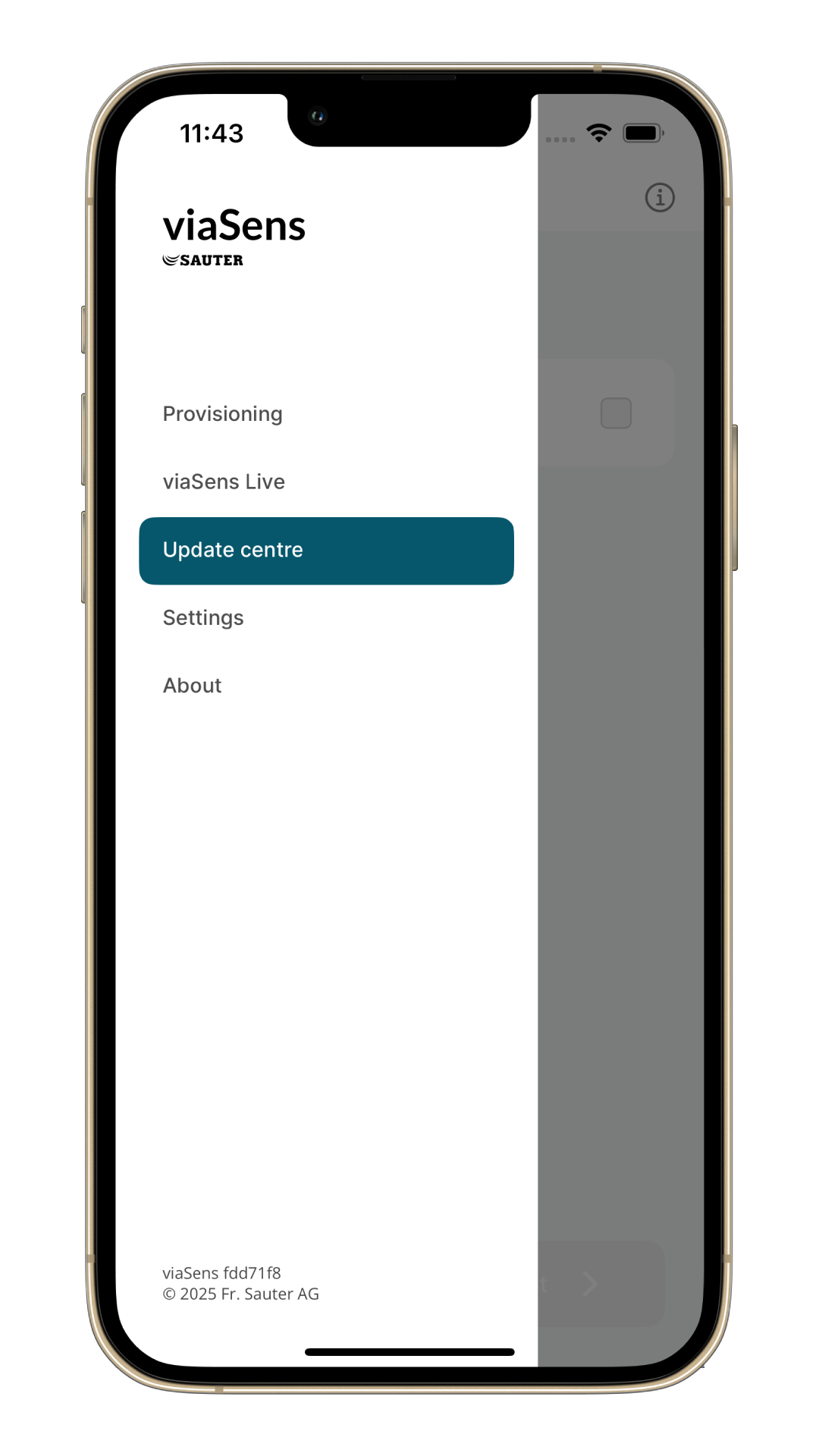 This mode allows updating unprovisioned devices via the Update Center. In the navigation bar of the mobile app, go to Update centre.